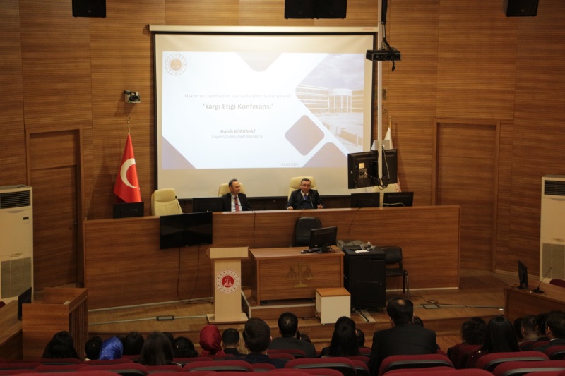 Cumhuriyet Başsavcımız Sayın Habib KORKMAZ tarafından Hakim ve Cumhuriyet savcı yardımcılarımıza yönelik ‘Yargı Etiği Konferansı’ düzenlenmiştir.