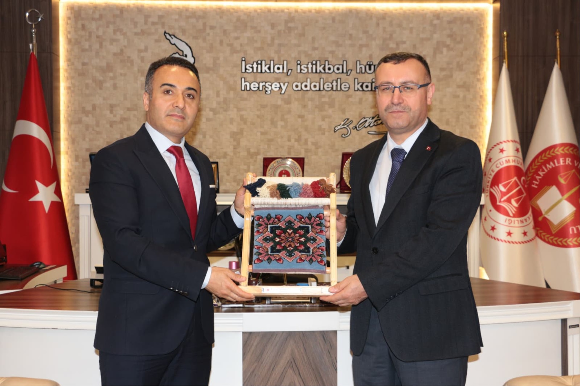 Türkiye Adalet Akademisi Başkanlığına atanan Sayın Metin YILDIRIM Cumhuriyet Başsavcımız Sayın Habib KORKMAZ’ı makamında ziyaret etti.